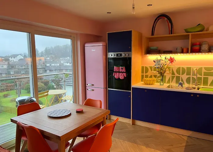 安布尔塞德Rainbow Retreat With Stunning Panoramic Views公寓设有大厨房和配阳台,咖啡/茶设施 和卫星频道平板电视的客房. 从公寓走17分钟即可到奄堡西羅馬兵營.